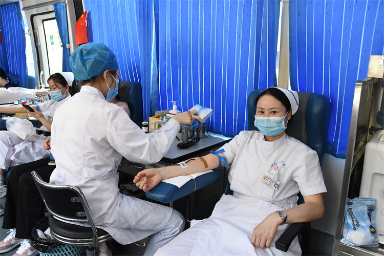 上午8點(diǎn),醫(yī)務(wù)人員們?cè)谠簝?nèi)有序排隊(duì)獻(xiàn)血,在隊(duì)伍中,有醫(yī)生、護(hù)士、醫(yī)技人員,還有行政、后勤人員,有多次參加無(wú)償獻(xiàn)血的黨員干部,也有剛踏上工作崗位的年輕醫(yī)務(wù)工作者。他們中有的剛值完夜班,有的獻(xiàn)完血后馬上就回到了工作崗位,他們比普通人更了解血液對(duì)患者的珍貴。