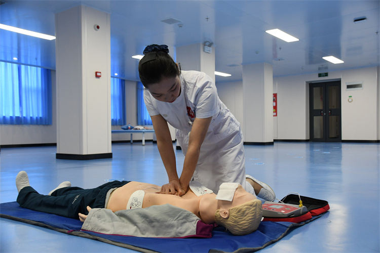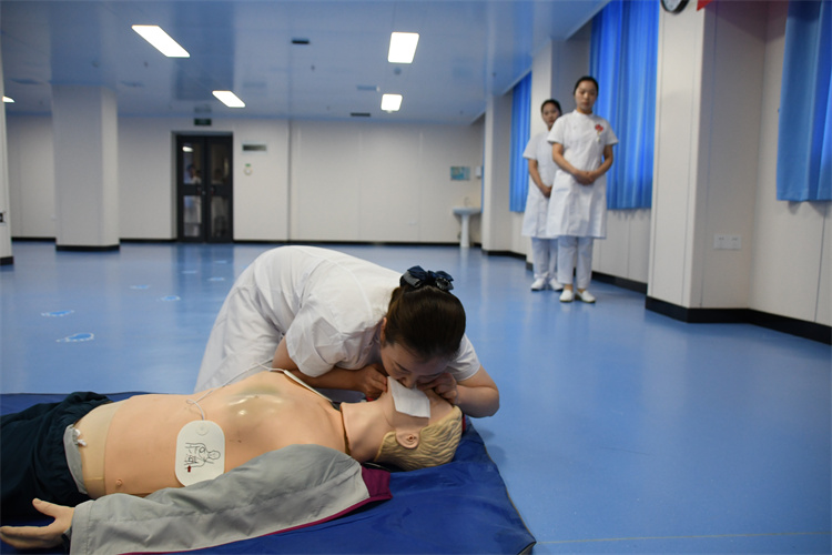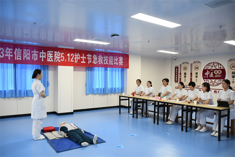 5月9日下午15時(shí),在信陽(yáng)市中醫(yī)院民權(quán)路院區(qū)二樓康復(fù)大廳,整裝待發(fā)的參賽者、正襟危坐的評(píng)委、多次被“搶救”過(guò)的模型人,都已準(zhǔn)備就緒。比賽的號(hào)角正式吹響,選手們沉著冷靜,操作嫻熟嚴(yán)謹(jǐn),按照流程做好各項(xiàng)規(guī)范動(dòng)作及要求,用扎實(shí)的專業(yè)功底和操作技能,展示了護(hù)理人員積極向上的精神面貌與良好的應(yīng)急處置能力。