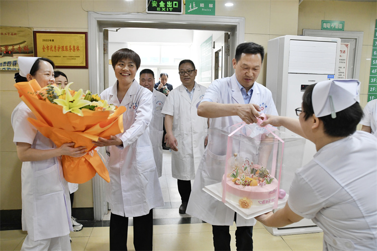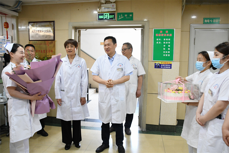 5月12日上午9時(shí),信陽(yáng)市中醫(yī)院各科室洋溢著歡聲笑語(yǔ)。黨委書記段紅燕、院長(zhǎng)曾憲國(guó)帶領(lǐng)在家領(lǐng)導(dǎo)班子成員深入臨床各護(hù)理單元,向奮戰(zhàn)在臨床一線的護(hù)理團(tuán)隊(duì)送去節(jié)日的鮮花與蛋糕,表達(dá)節(jié)日的問(wèn)候與關(guān)懷,感謝她們一直以來(lái)為了衛(wèi)生健康事業(yè)的默默奉獻(xiàn)和辛勤付出。