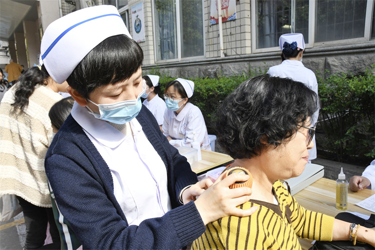 節(jié)日的美好,讓護(hù)理姐妹們不忘初心,時(shí)刻謹(jǐn)記以提燈之光傳遞愛與希望。5月8日、11日上午,一群身穿白衣的“天使”在信陽(yáng)市中醫(yī)院民權(quán)路院區(qū)、解放路院區(qū)門前開展義診活動(dòng),用實(shí)際行動(dòng)踐行南丁格爾精神。