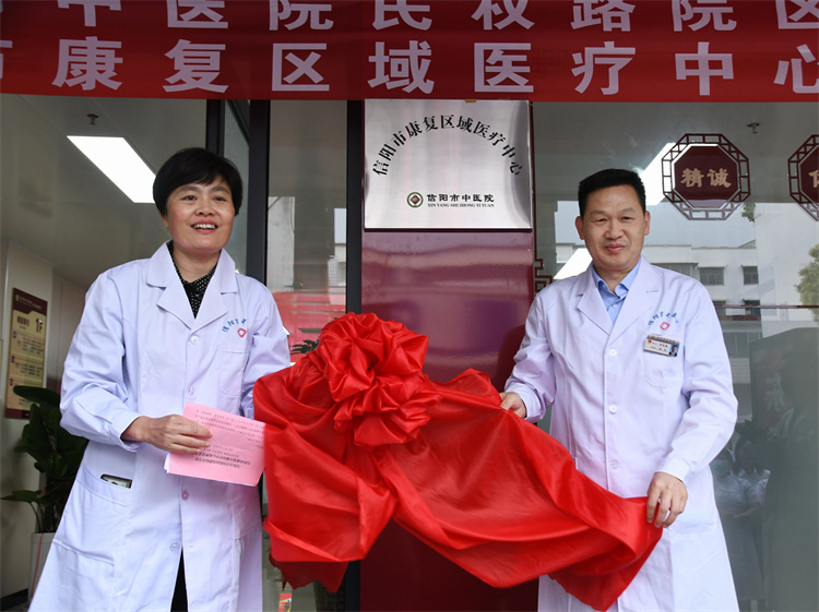 全體院領導班子成員為“信陽市康復區(qū)域醫(yī)療中心”揭牌。