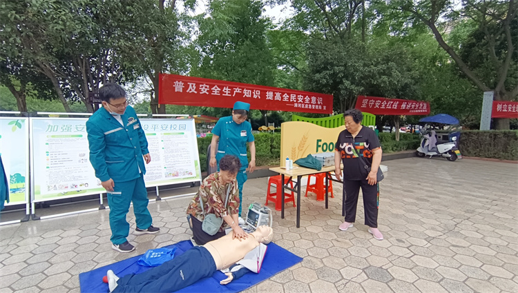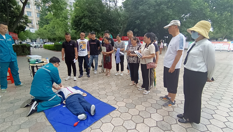 活動現(xiàn)場,急診科醫(yī)師尚凌新、護(hù)師石惠惠運(yùn)用心肺復(fù)蘇人體模型為群眾們演示如何進(jìn)行胸外心臟按壓、清理口腔異物、開放氣道、人工呼吸等進(jìn)行心臟復(fù)蘇急救示范,以及運(yùn)用海姆立克法如何救治呼吸道異物的患者。演示時,醫(yī)生和群眾們開展深入的互動,指導(dǎo)他們進(jìn)行現(xiàn)場演練,幫助他們在最短的時間內(nèi)掌握基本的急救技巧。同時對群眾們操作中存在的問題現(xiàn)場糾正和指導(dǎo),并對群眾們現(xiàn)場提出的問題認(rèn)真的進(jìn)行解答。