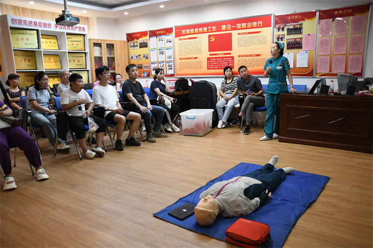 為切實增強居民的健康意識,提高全民急救技能,8月25日上午,市中醫(yī)院走進建設(shè)銀行中山支行進行健康宣講活動,向群眾普及健康知識及急救知識技能。